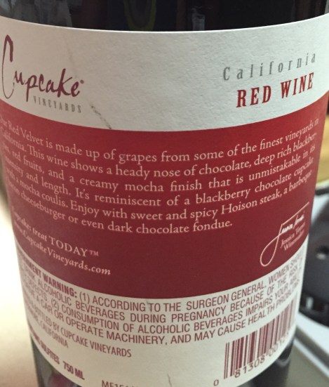 The back of the label reads”This wine shows a heady nose of chocolate, deep rich blackberries, red fruits , and a creamy mocha finish.”